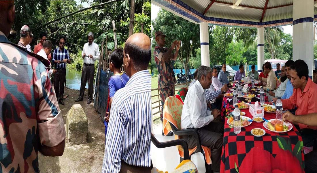 এসময় বাংলাদেশের পক্ষে উপস্থিত ছিলেন বাংলাদেশ ভূমি রেকর্ড ও জরিপ অধিদপ্তরের মহাপরিচালক মো. তসলিমুল ইসলাম, পরিচালক মো. শাহজাহান আলী, ভূমি মন্ত্রণালয়ের উপ-সচিব মো. আব্দুর রহমান, ভূমি রেকর্ড ও জরিপ অধিদপ্তরের সহকারী পরিচালক ফেরদৌস হাসান, কলারোয়া উপজেলা নির্বাহী অফিসার (ইউএনও) আরএম সেলিম শাহনেওয়াজ, ৫নং কেঁড়াগাছি ইউপি চেয়ারম্যান আফজাল হোসেন হাবিল, ইউনিয়ন আ.লীগের সভাপতি ভূট্টোলাল গাইন, সাংগঠনিক সম্পাদক মাস্টার শাহিনুর রহমান, সাংবাদিক মিলন দত্ত, অহিদুজ্জামান খোকা, শফিকুর রহমান, হোসেন আলী, উপজেলা পূজা উদযাপন পরিষদের সাধারণ সম্পাদক সিদ্ধেশ্বর চক্রবর্তী, হরিদাস ঠাকুরের জন্মভিটা আশ্রম কমিটির সাধারণ সম্পাদক সন্দীপ রায়, বিজিবি’র কাকডাঙ্গা বিওপি‘র কোম্পানি কমান্ডার ছিদ্দিকুর রহমান প্রমুখ।