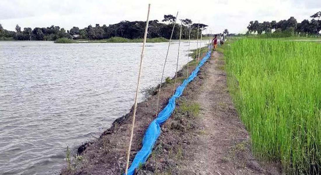 অপরদিকে রাস্তা দিয়ে ঘেরা জমিতে আমন ধান লাগান কৃষকরা। ধান গাছ বেড়ে ওঠার সঙ্গে মাছও বেড়ে ওঠতে থাকে।